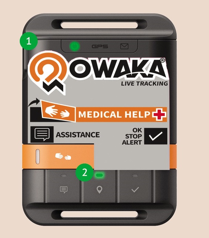 | Le rappel des fonctions spécifiques OWAKA est indiqué sur la face AV de la balise. | ||
