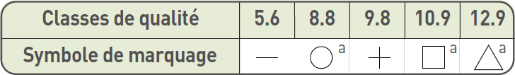La qualité de la visserie est évaluée selon différentes classes qui sont liées à la résistance des matériaux.