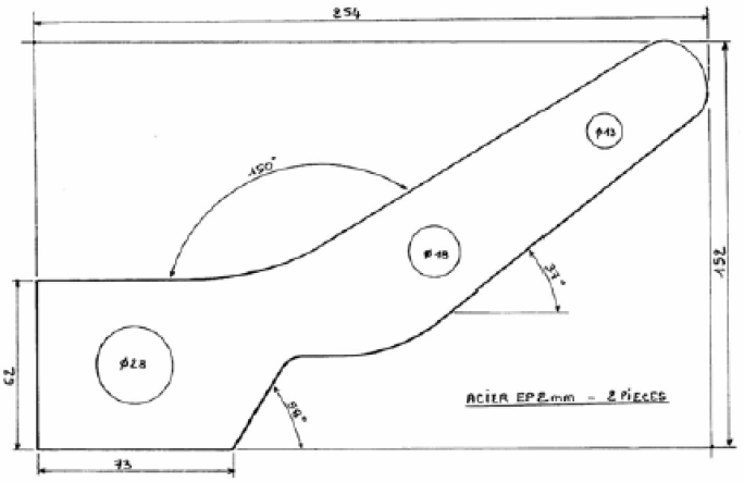 Réaliser dans de la tôle de 2mm, 2 renforts suivant le schéma A, puis les pointer sur le berceau suivant le
