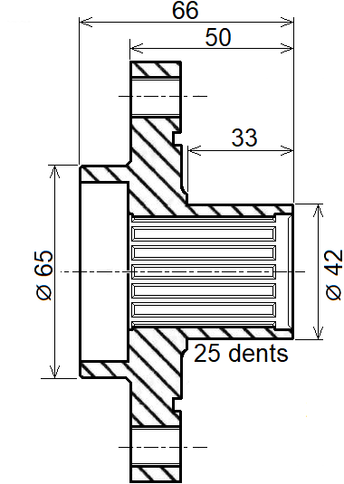 3307 69 Cannelures: 25dents Cardans: M24x150 équivalent 3307 72 |