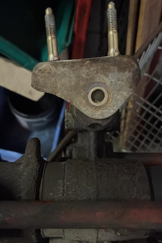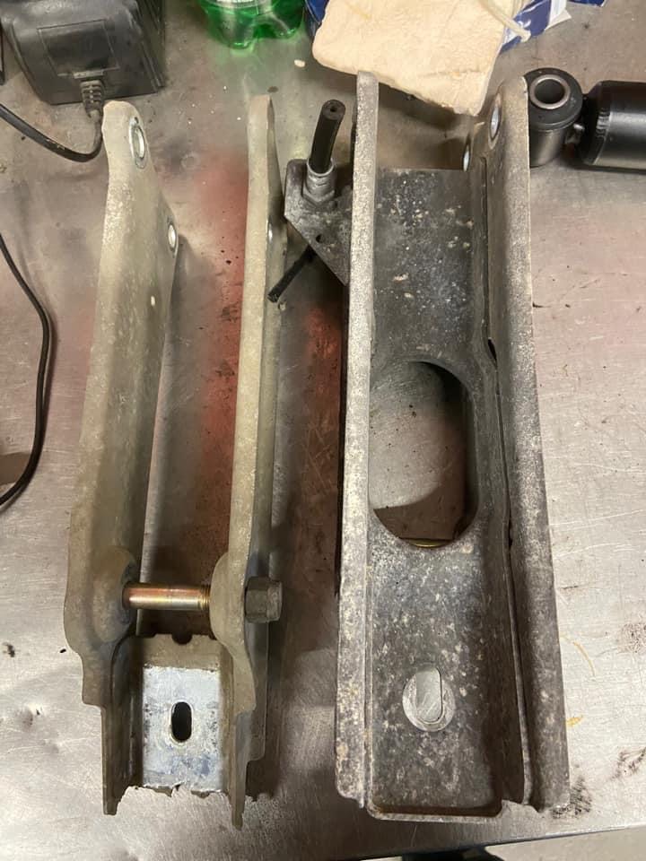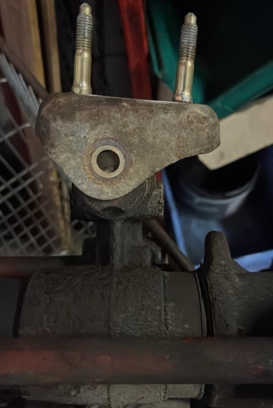 Une des solutions est de conserver l'épaulement des goujons d'origines en augmentant la taille du support en U de la fixation avant. (un renfort est placé dans la section rajoutée).