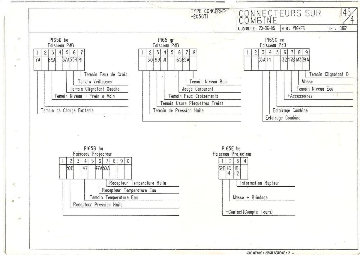 Malgré que le compteur Jeager des 205 GTi ait été remplacé en 87 par un Veglia, la connectique à 5 prises reste identique sans modification.