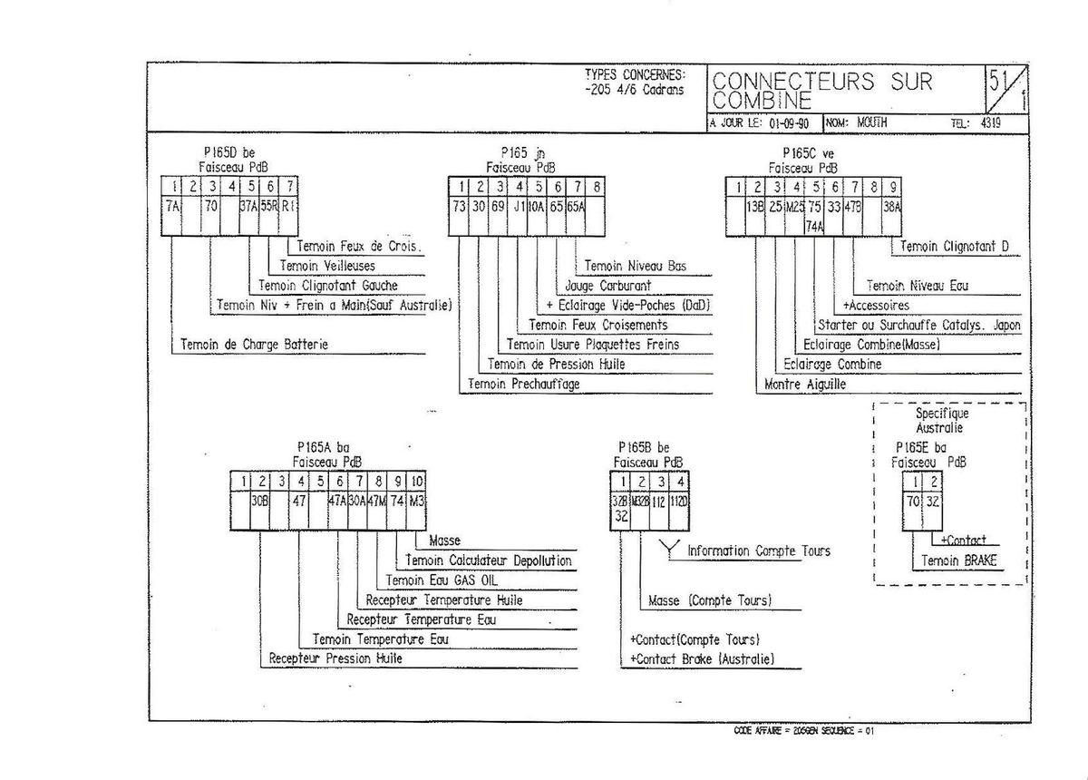 Malgré cet écart de millésime entres ces 205 citées, elles disposent du même faisceau de tableau de bord à 5 prises au compteur facilitant le montage