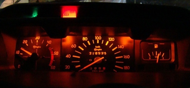 A noter que la plage rouge du compte tours diffère suivant le modèle et millésime de la 205 injection: