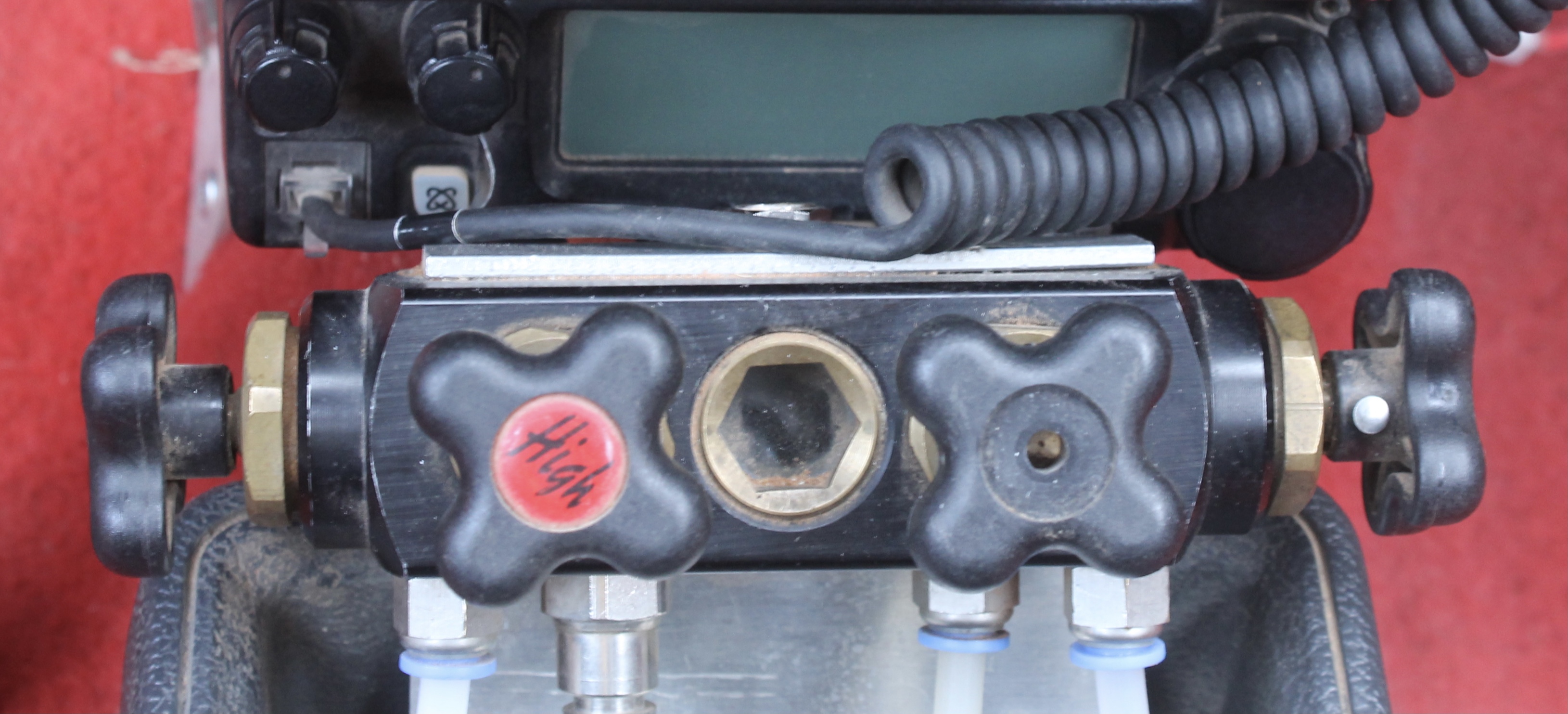Méfiance malgré tout dans cette configuration puis les manométres des roues, tarés à 4bars, partiront en butée si le robinet de gonflage est ouvert trop rapidement avec une réserve d'air au maximum (généralement environ 5 ou 6bars).