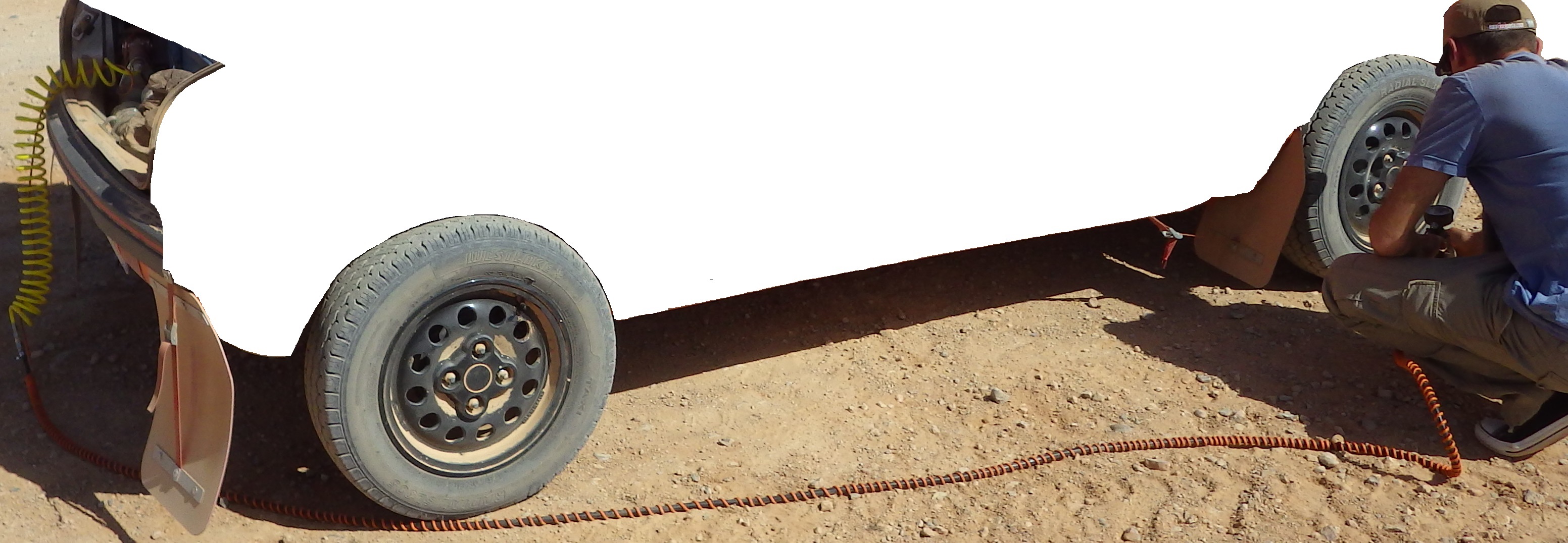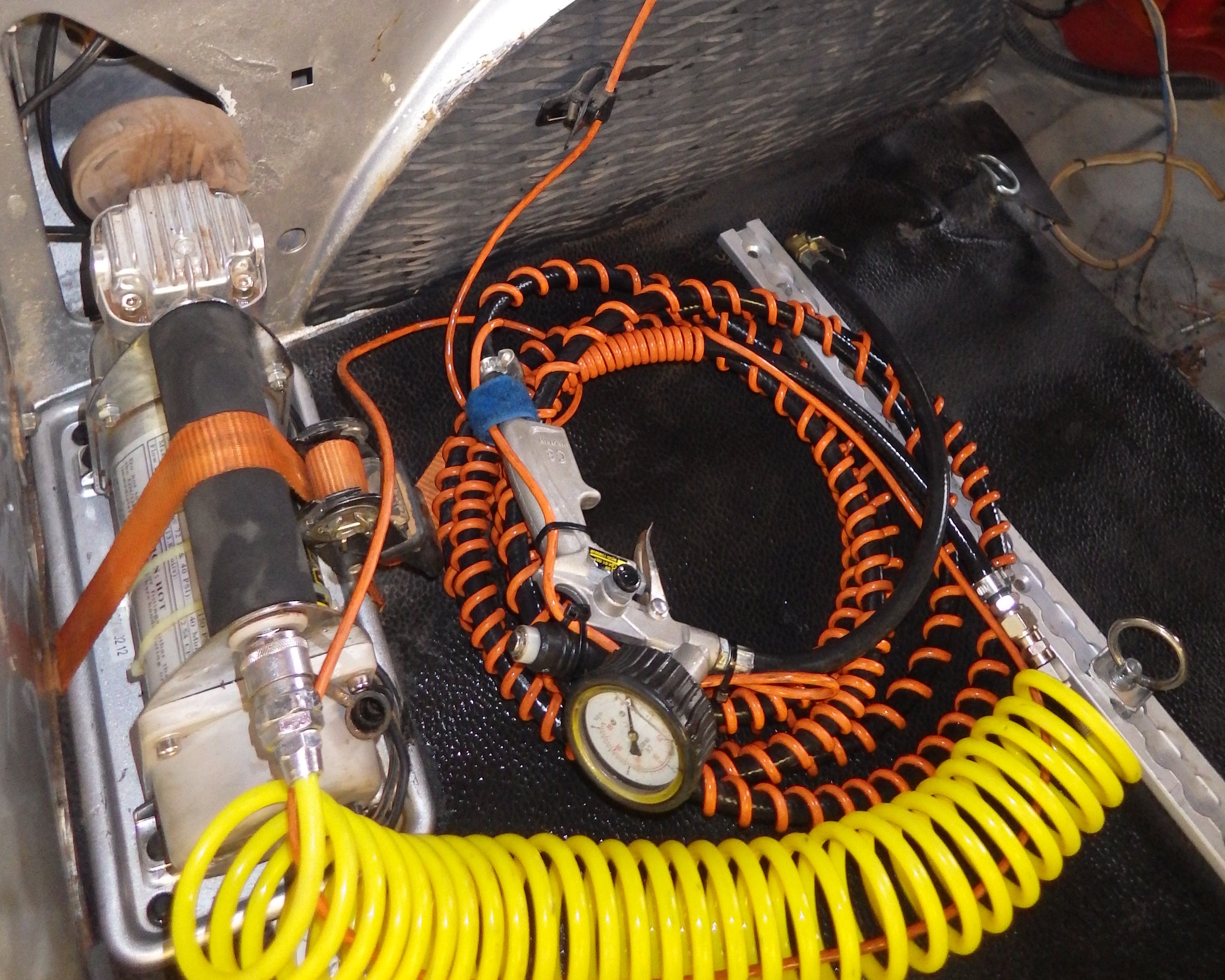 Le montage d'une petite réserve d'air est judicieux en complément du volume, si utilisé, des roues de secours ce qui peut être aussi utile si ces dernières sont crevées.