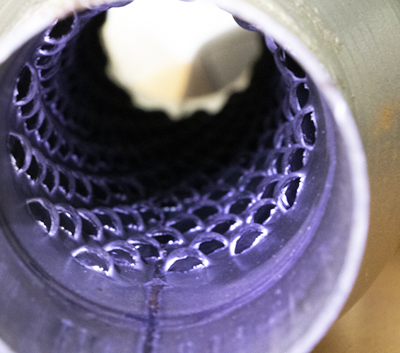 La particularité du Glasspack réside dans le tube intérieur perforé, qui présente des dizaines de petites écailles en acier.