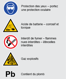 Plus d'infos sur les risques d'explosion batteries au plomb, voir article.pdf | |