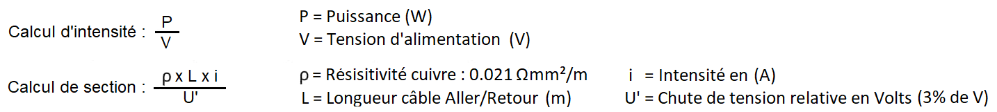 | Section câble 12v/Puissance Max | Section câble 12V/Intensité Max |