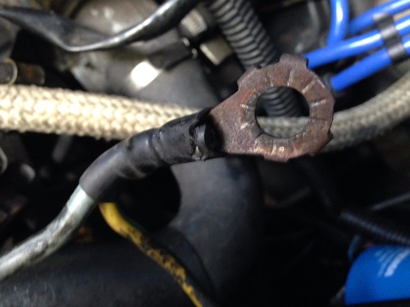 ← Bornier de masses fixé sur face avant Cosses rondes remplacant le bornier → |