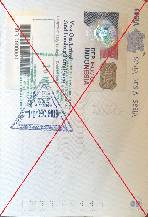 | Tampon d'entrée Maroc et numéro. | Visa Indonésie fait à l'arrivée. | Visa Libye fait avant le voyage. | Traduction passeport pour Libye. |