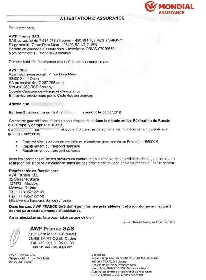 Si vous n’êtes pas assuré à l'une de ces mutuelles, il suffit de faire une demande à votre compagnie d'assurance pour avoir ce document attestant votre assurance médicale-rapatriement.