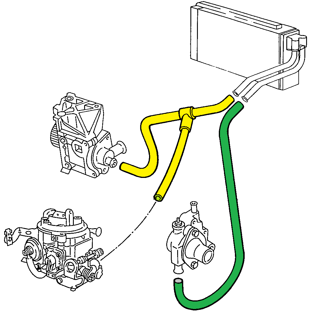 Durite moteur 205TU - Sortie Radiateur d'Habitacle vers pied de carbu & entrée pompe à eau moteur. |