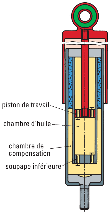 • Tube interne : chambre d'huile, travaille en pression par l'effet du piston.