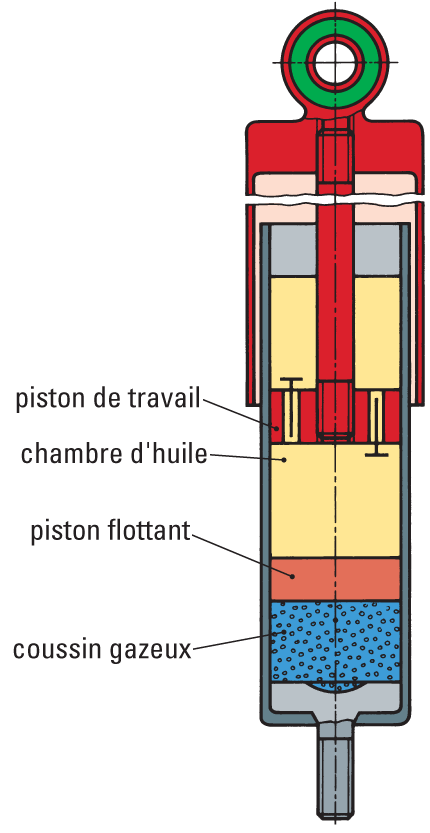 C'est une évolution de l'amortisseur hydraulique qui consiste à remplacer l'air du tube externe par un gaz à basse pression (BP).