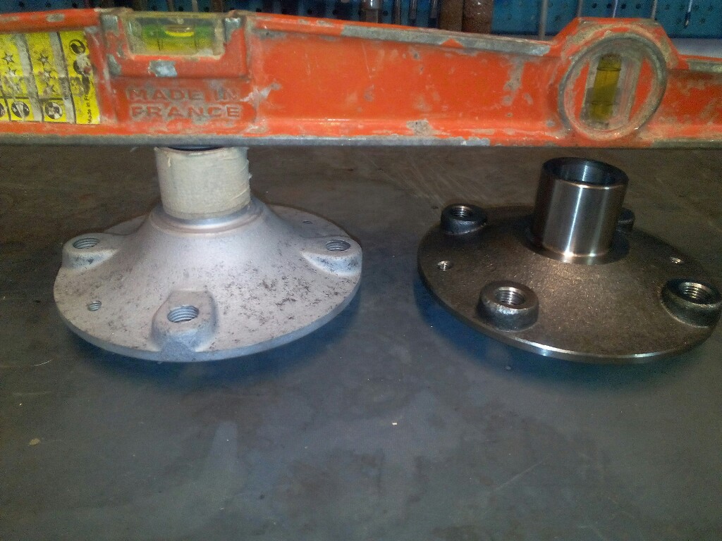 ← Comparatif entres les moyeux de 205 "basiques" (à gauche) et Rallye/GTi 1.6 (à droite). Cette subtilité explique la raison pour laquelle les jantes de GTi 1.6 SMR (14pouces) frottent sur un étrier Girling lorsqu'elles sont montés sur une GTi 1.9. |