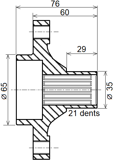 3307 49 Cannelures: 21dents Cardans: M20x150 |