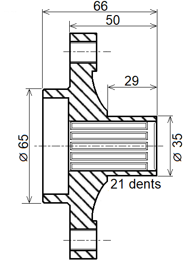 3307 50 Cannelures: 21dents Cardans: M20x150 |