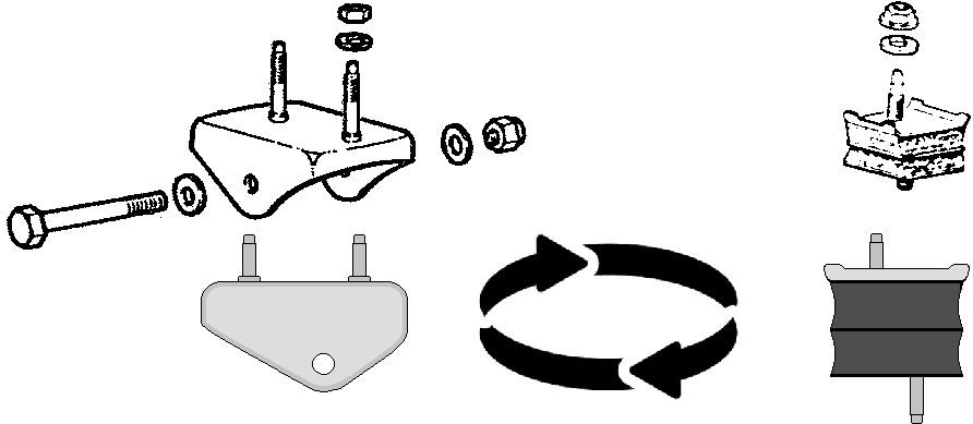 Faire de même avec les 2 silentblocs arrières servant de fixation en les inversant →