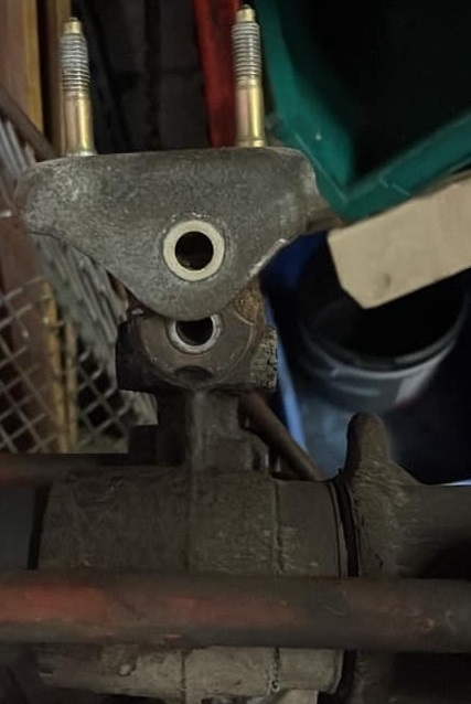 Une des solutions est de conserver l'épaulement des goujons d'origines en augmentant la taille du support en U de la fixation avant. (un renfort est placé dans la section rajoutée).