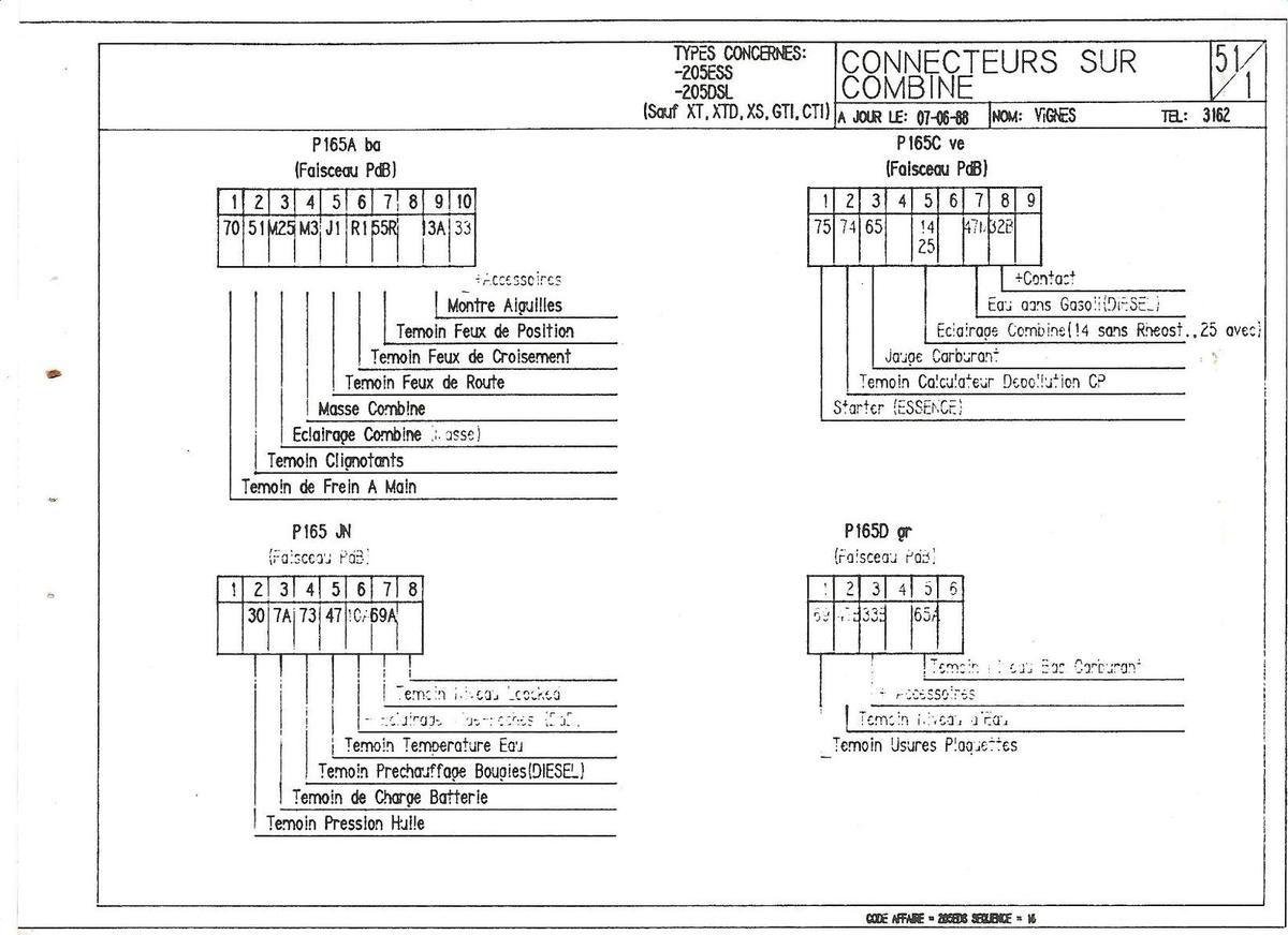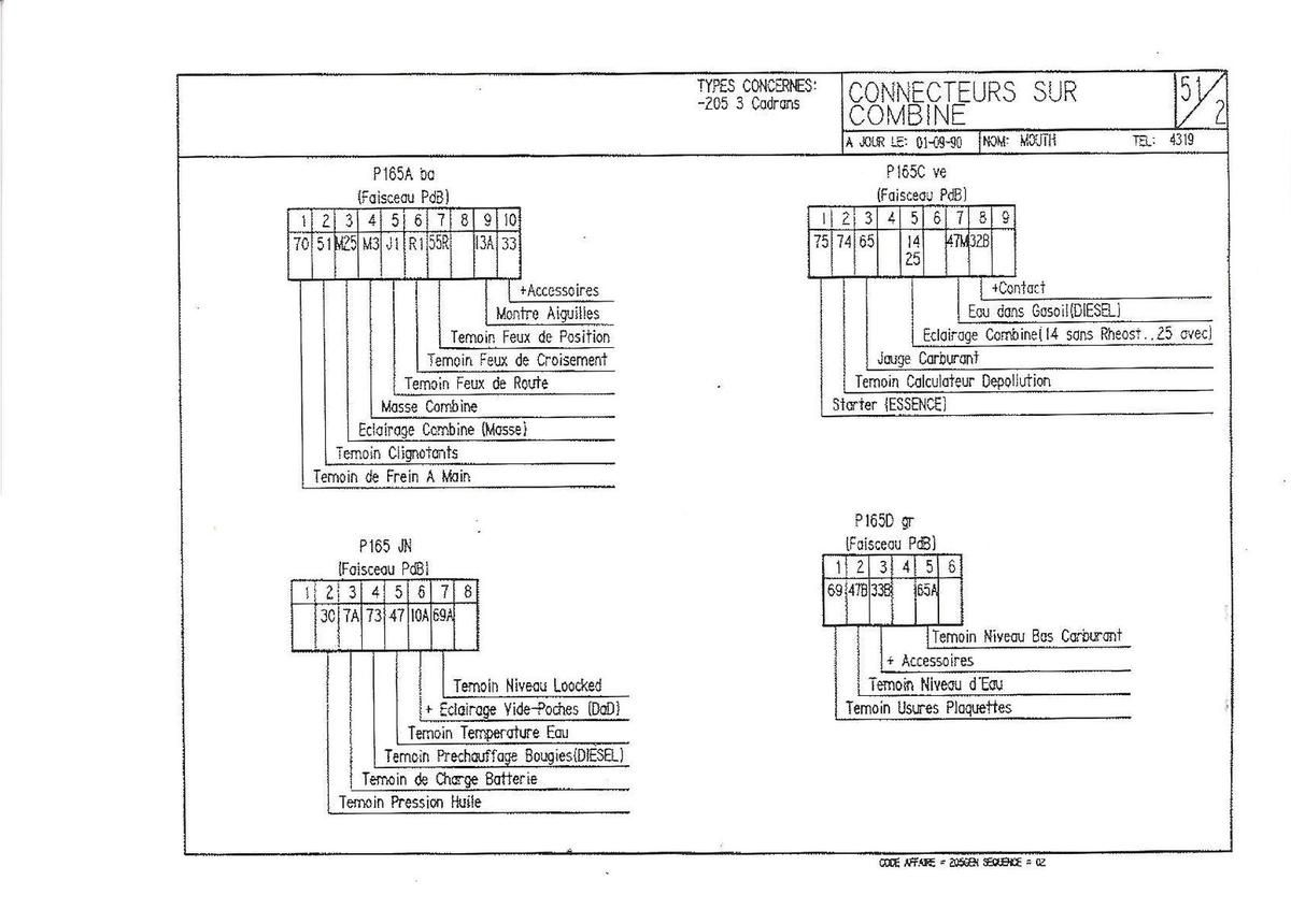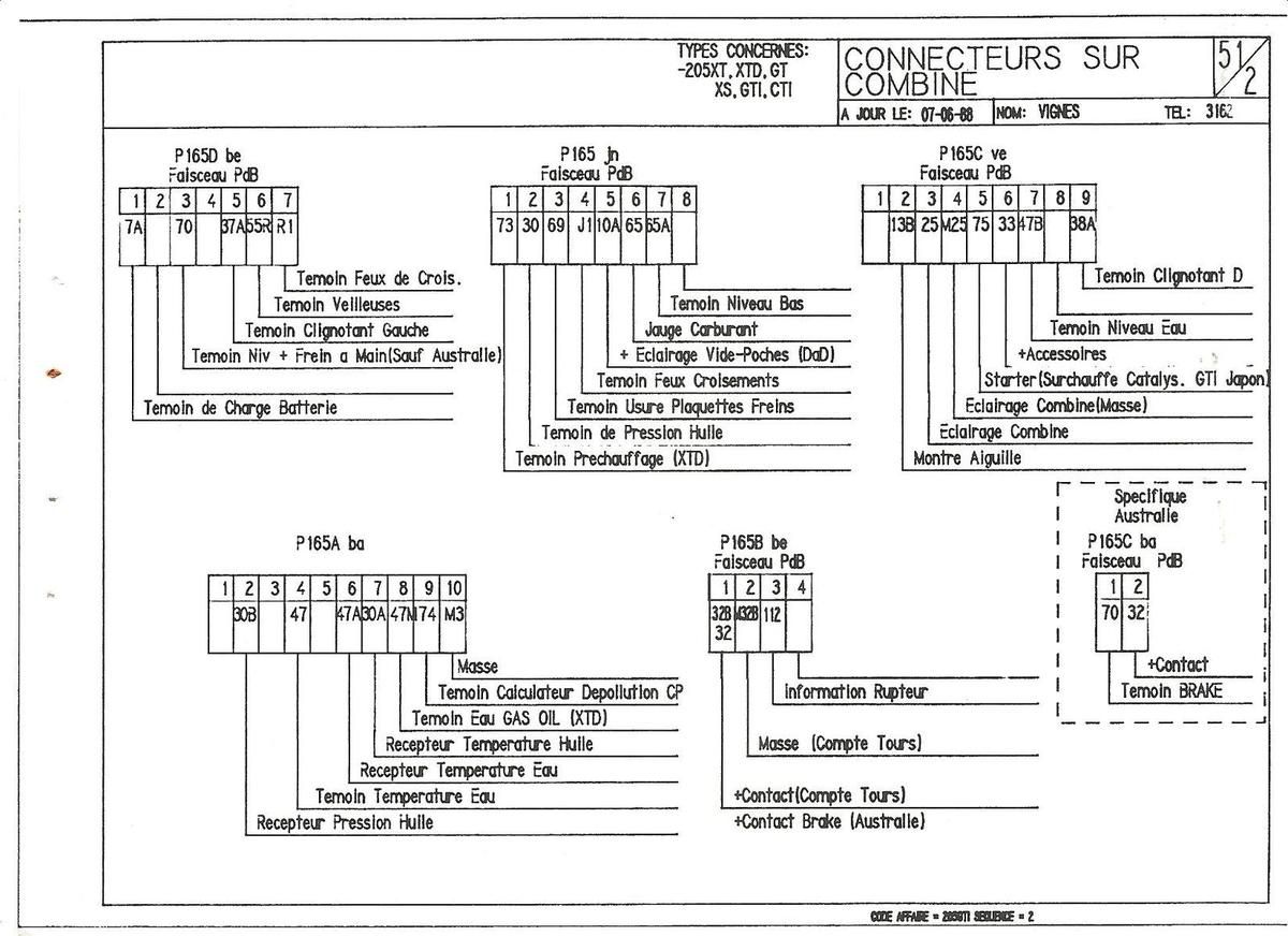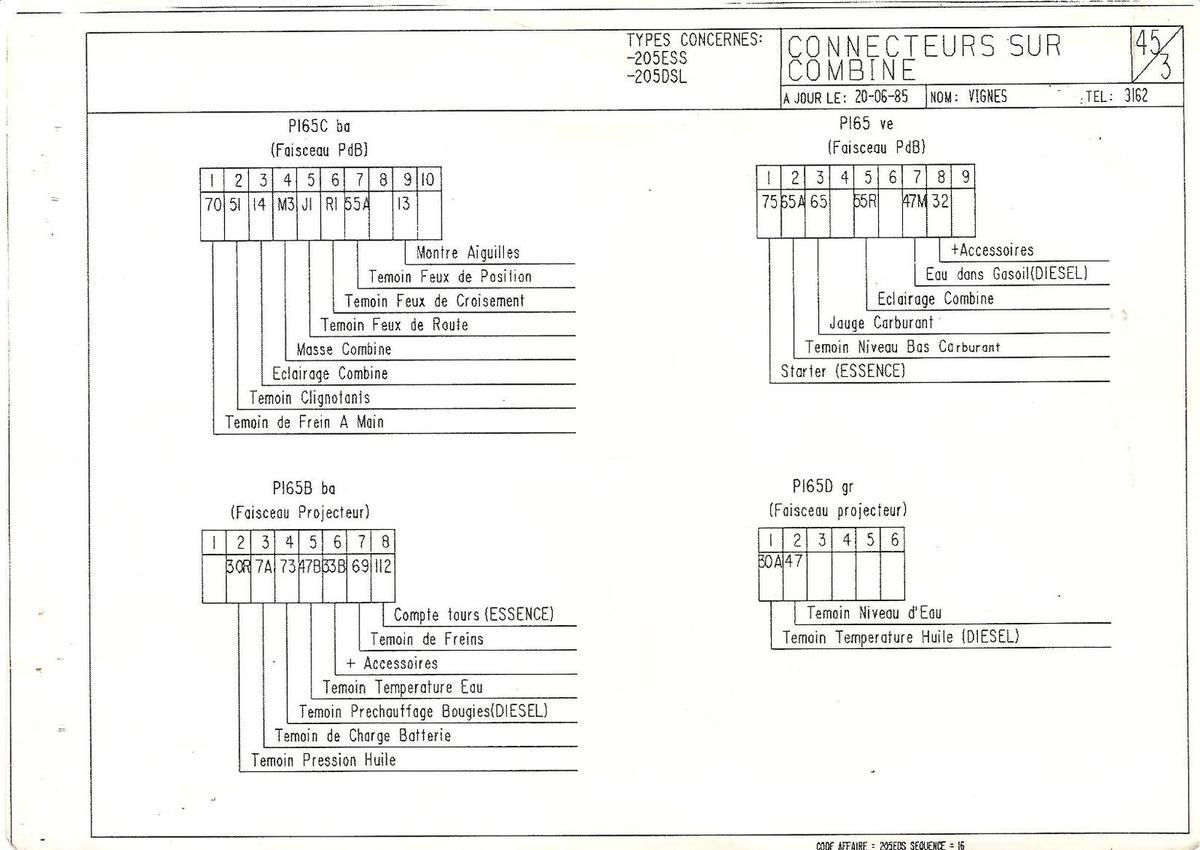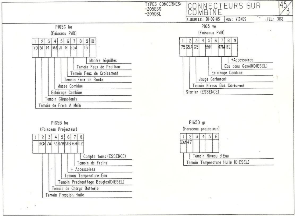Malgré cet écart de millésime entres ces 205 citées, elles disposent du même faisceau de tableau de bord à 5 prises au compteur facilitant le montage