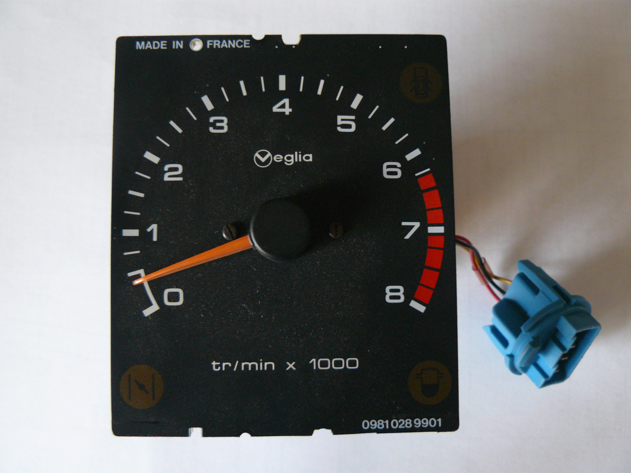 Face Ar compteur Jeager 205 essence phase 1 avec compte-tours. |