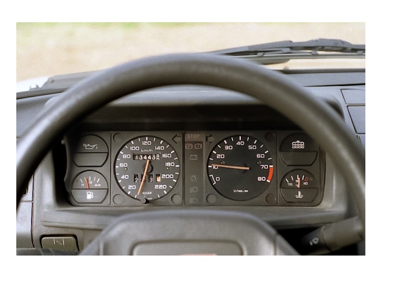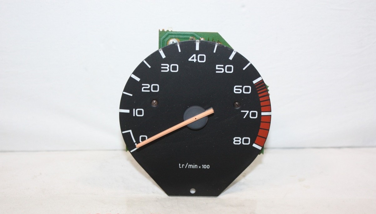 A noter que la plage rouge du compte tours diffère suivant le modèle et millésime de la 205 injection: