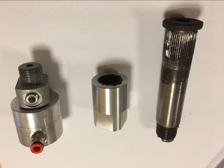 En complément du perçage de l'axe, il est nécessaire de fabriquer un écrou de tambour spécifique sur mesure pour fixer le raccord tournant tout en assurant une bonne étanchéité (sur demande).