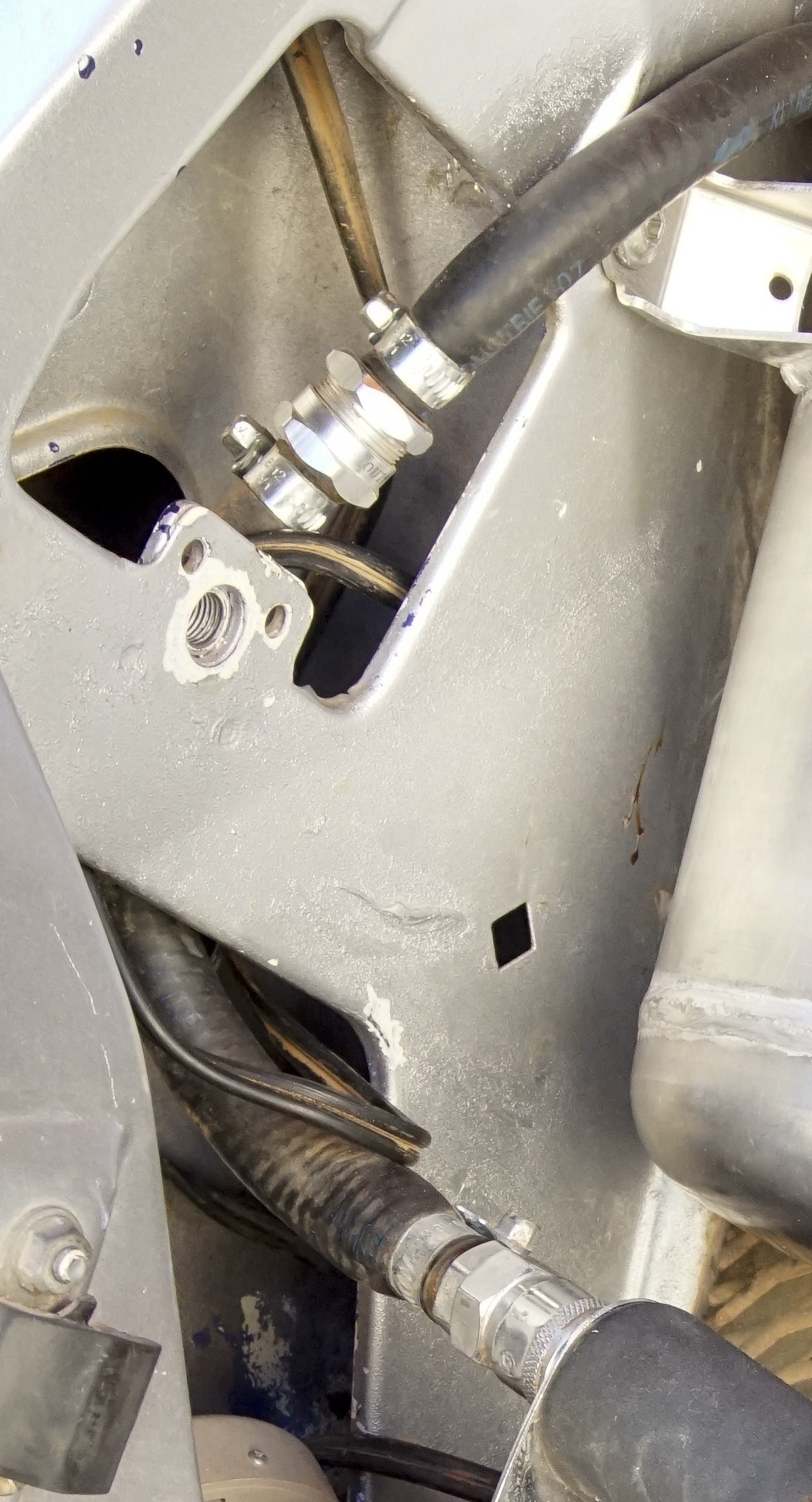 Il est tout à fait possible de percer les axes de roue du train arrière éliminant le tube de liaison extérieur vers le raccord tournant pour limiter le risque d'arrachement à ce niveau.