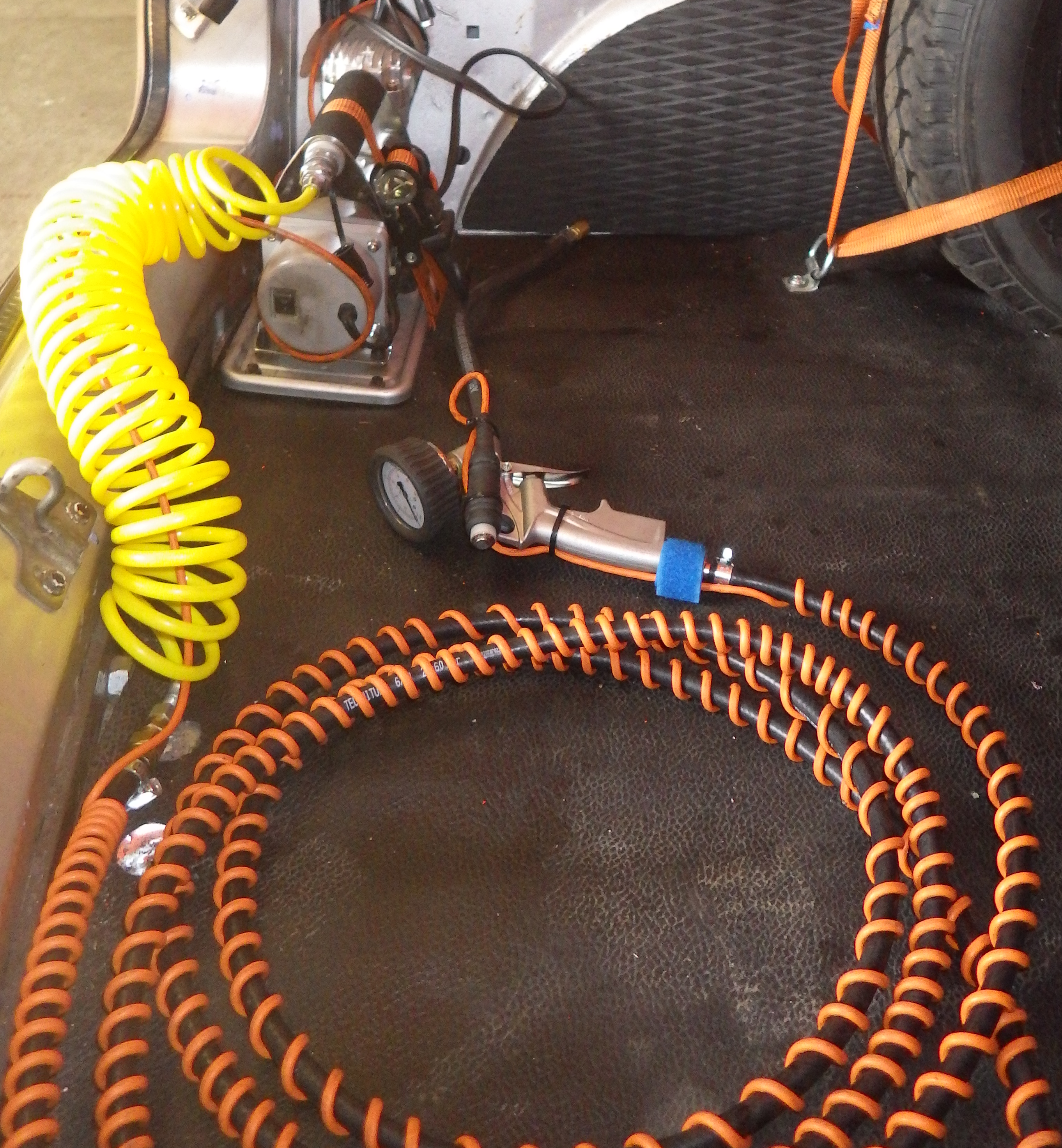 Le montage d'une petite réserve d'air est judicieux en complément du volume, si utilisé, des roues de secours ce qui peut être aussi utile si ces dernières sont crevées.