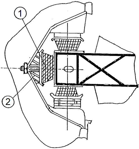 Afin de mieux immobiliser le moteur, il est possible de monter un 3ème silentbloc au niveau du support moteur droit en s'inspirant de la préparation 205 Gr. A p102. Le silentbloc rajouté (1) se monte sur la coquille support par le biais, normalement, d'un adapteur (2) → |