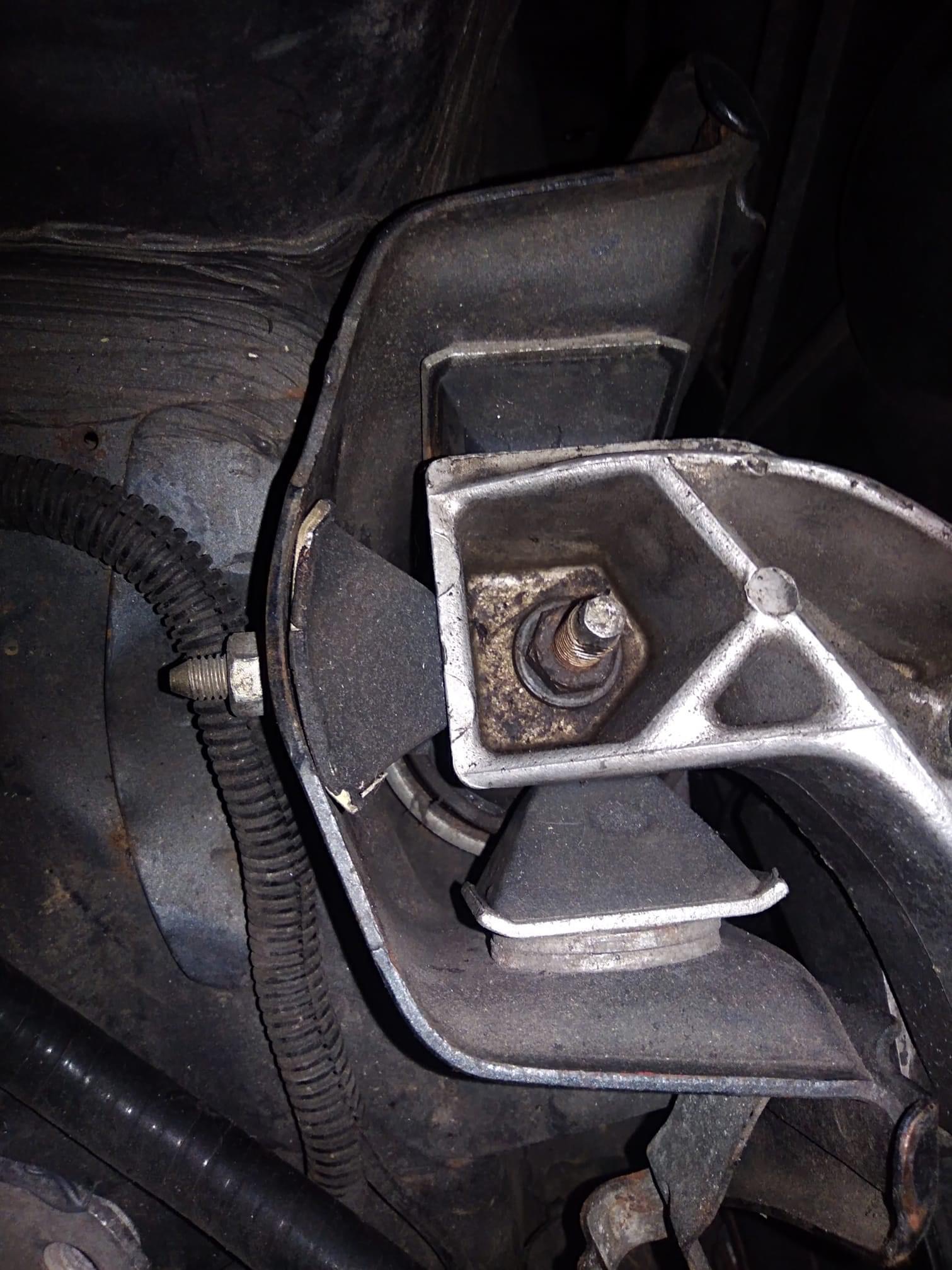 le goujons de boite de vitesses et le support de batterie. Le moteur est immobilisé par deux silentblocs de forme triangulaire en partie haute