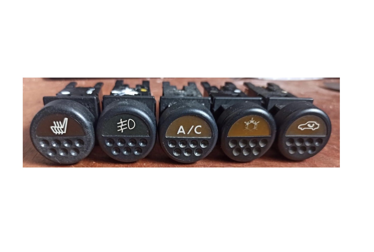 Liste non-exhaustive (certains modèles exports peuvent avoir des spécificités telle que la fonction avec l'interrupteur "sièges chauffants"). Les interrupteurs de tableau de bord phase 2 sont communs avec la 106 permettant de trouver des logos plus adaptés aux circuits rajoutés. Ils sont aussi utilisés chez Lotus (Esprit, Elise, etc.) |